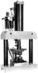 Eine stabile Plattenbauweise mit verschweißten Versteifungen sichert eine minimale Aufbiegung der Presse. Die Druckaufnahme erfolgt über zwei oder vier Säulen. Diese Ausführung kann äußerst flexibel auf den Anwendungsfall zugeschnitten werden, da der Größe kaum Grenzen gesetzt sind. Auch bei dieser Presse kann zwischen pneumohydraulischen und hydraulischen Druckzylindern gewählt werden.