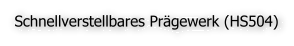 Schnellverstellbare Prägewerke eignen sich besonders für Kennzeichnungen, mit häufig wechselnden Zeichengruppen, bei denen keine Zählfunktion benötigt wird. Über Hebel und Zwischenräder lassen sich Zahlen oder Buchstaben schnell einstellen. Große Sichtzahlen am Einstellrad zeigen die zu prägende Zeichenkombination. Da die Räder vor- oder rückwärts geschaltet werden können, kann der kürzeste Einstellweg gewählt werden.