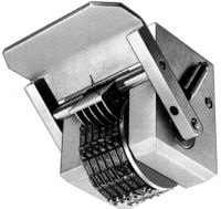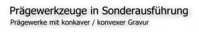 Prägewerke in diesen Ausführungen können zum Kennzeichnen von runden Teilen, ohne Verwendung einer Abrollmaschine eingesetzt werden. Mit ihnen können runde Materialien längst (konkave Gravur) und quer (konkaver Rädersatz) zur Achse geprägt werden. Der Pragerradius wird dem kennzeichnenden Teil angepasst. Je nach Durchmesser und Ziffernhöhe können mit einem Werkzeug verschiedene Radien mit relativer Anpassung geprägt werden.