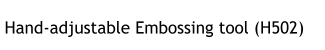 The wheels of hand-adjustable embossing mechanisms are fixed with elastic grippers and notched discs at the wheels. Adjustment is made by means of an adjusting pin. The adjusted figure combination can be controlled by visual figures. The wheels can be adjusted forward and backward without loosening an