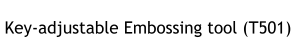 Key-Embossing tools are put on the wished combination by mounted adjusting levers. Every wheel disposes of a keys lever. By pressing down the respective key the wheel is indexed for one figure (letter). The separate Wheels dispose of additional sight engravings in which the opposed marks can be read